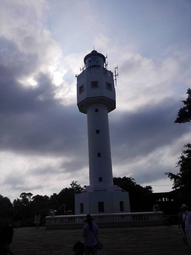 涠洲灯塔位于涠洲岛之巅,1956年设立,原为铁架结构,1969年改建为石塔。由于原灯塔高度不够,导航性能较差,加之建设简陋,与涠洲岛的旅游景点很不相称。2002年,广东海事局拨款100多万元重建后的涠洲灯塔,高22米,设计考究,建造工艺精细,是一个不可多得的建筑精品;其内设旋转楼梯,上落方便,梯级铺贴红色花岗岩面层,显得名贵高雅;塔身内侧贴白色瓷砖,外侧面贴白色仿石砖,洁白如雪;灯塔采用高级铝合金刚化玻璃水密窗,耐腐蚀、防水性好;塔的底部和悬挑室底板处巧妙地开设通风孔,使灯塔内部长期处于通风透气状态;塔顶安装上海产铜制灯笼,灯光射程18海里;灯塔上部设计有瞭望台,让游人登塔极目远眺,全岛风光尽收眼底 。