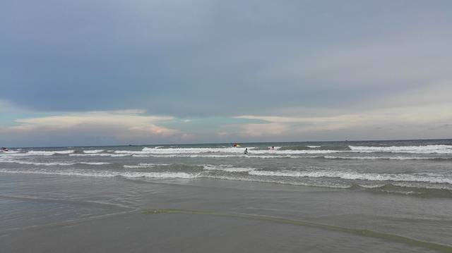 入住后稍事休息便奔了过去,3分钟的路吧。银滩的沙还是很白很细的,水不是太清,浪还不错,适合玩水。小屁孩乐得屁颠屁颠的,那个快活.....