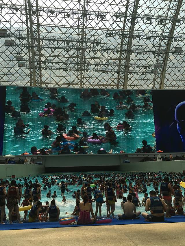 对于七月十七日的成都环球大厦水上乐园游 有两个特别深刻的感触 一是贵 二是人多 本来是矛盾的 但恰恰两个就联系到一起了 票价180包括1米2以上的小孩在内都是180 还有最不人性的一点 纸质手环 说是防水的 但还是很容易掉 在那天就遇见几个手环掉了的 最操蛋的手环不能补 要找到手环尸体 若大的环球中心水上乐园 掉了去那找去 所以我要说是操蛋的规矩 至于里面玩的设施还算凑合 说是有十三项 真正开放好玩的也就那几项而已 对于180的票价 我至今觉得高 小孩玩的还是很高兴 玩水嘛 不过后来发现随便一个游泳池 小孩都玩的开心 所以我基本不会带小孩再去 除非免费