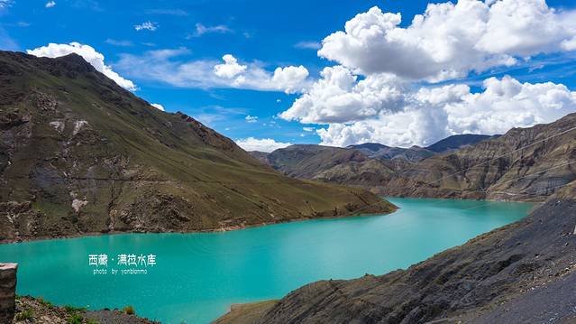 因为夏天是西藏的雨季,之前看天气预报的时候未来15天都有小雨的天气让我心灰意冷,我们出发的时候天还是阴晴不定的,到了羊湖以后天气稍稍好了许多,在行驶到满拉水库的时候,天彻底放晴了,然后照片拍出来的效果也好了很多。