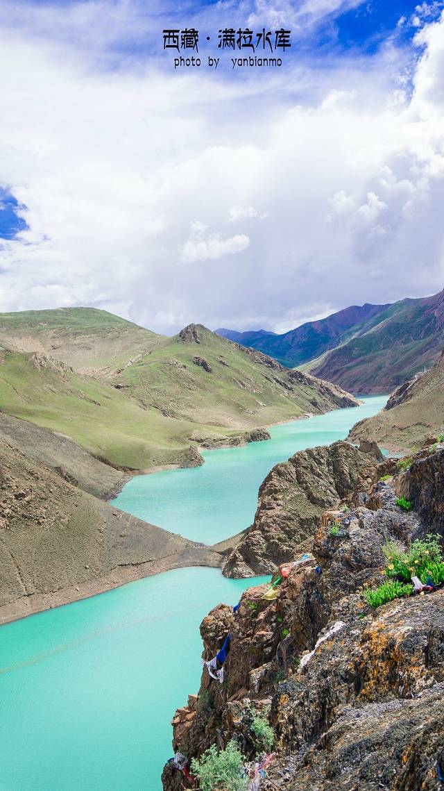 看到满拉水库的那一刻,可以用惊艳来形容,因为早上出发的早,在过了羊湖后,不知不觉就在车上睡着了,当车子到达满拉水库,下车看到的第一眼,便是被这碧绿的颜色给征服了,绿的是那样的纯粹啊!就像是上天赐给人间的一块大翡翠,真真是怎么拍都拍不够!