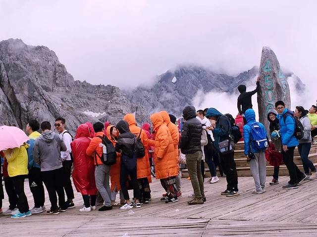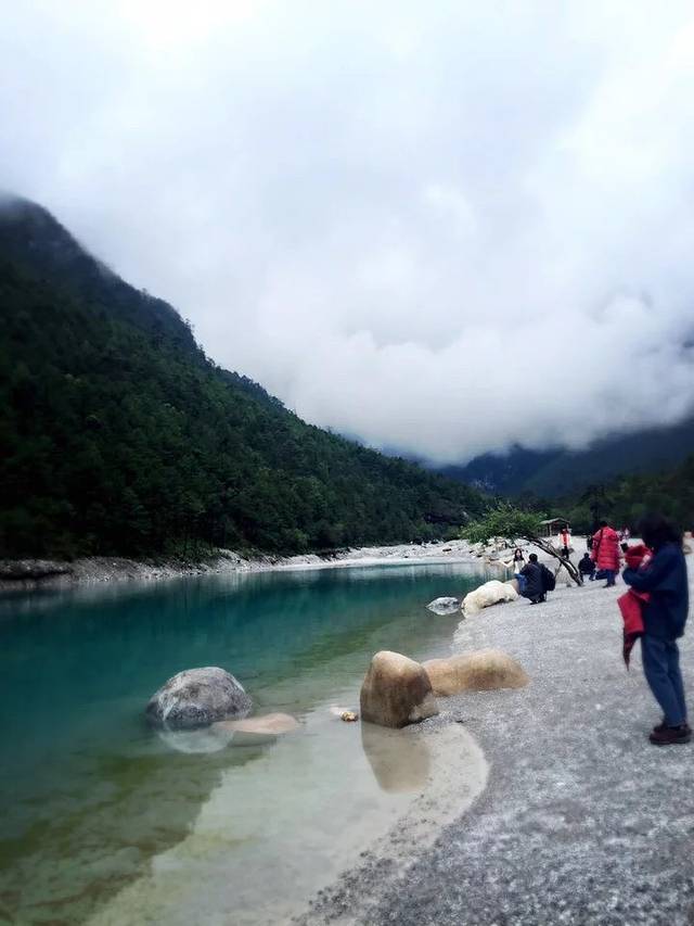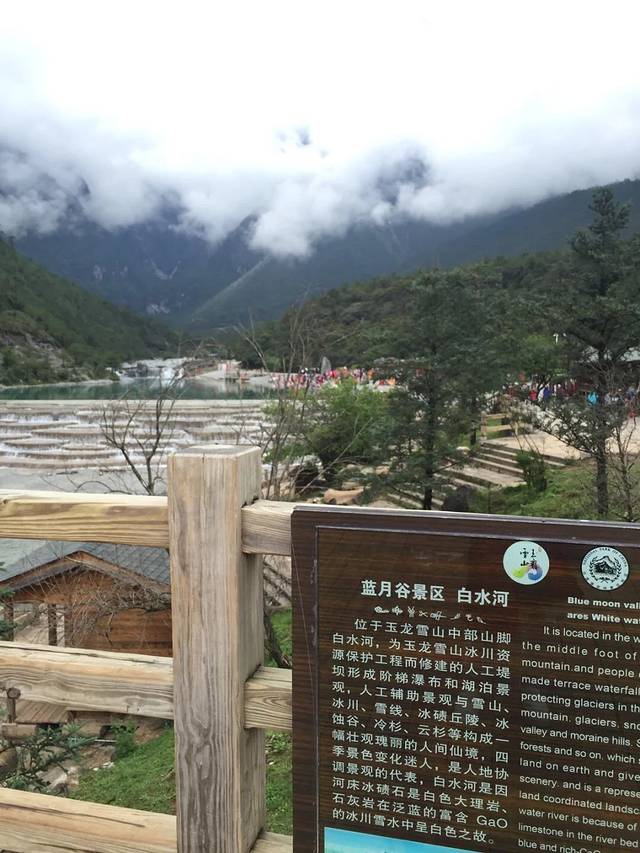 其实我到现在也没搞明白蓝月谷和白水河是两个地方还是这一个地方。蓝月谷景区和玉龙雪山是一起的,进去都需要统一购买进山票和环保车票,雪山则需要另买冰川大索道的票。蓝月谷另买电瓶车的票。虽说景区不大,但是要上雪山还是要保持体力建议坐电瓶车,不会错过任何景点。蓝月谷和雪山之间是有流水的豪华大巴穿梭。however, 请勿拥挤,虽然一直在排队是一件非常头痛的事。另外,雪山索道票请提前一天预订购买,据说是控制流量吧。白水河的水是从雪山上流下来的冰川水,也是一条圣河。晴天的时候,湖水清澈见底,因为湖底的化学物质所以整条河呈现蓝色,俗称小九寨。但阴天的时候,就是乳白色了。