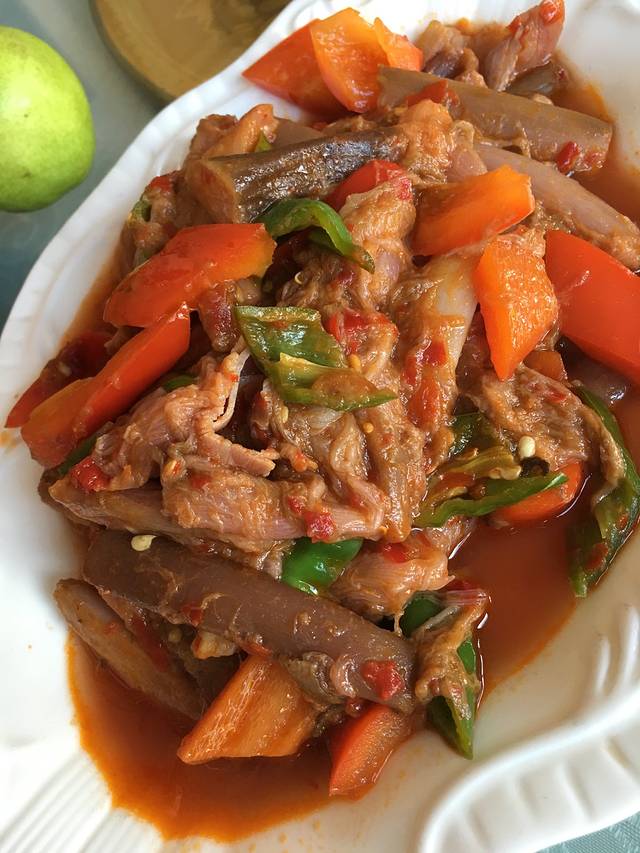 这是第二种吃法,把鸭肉炒菜,特别好吃。第三种就是把鸭架煮汤喝。