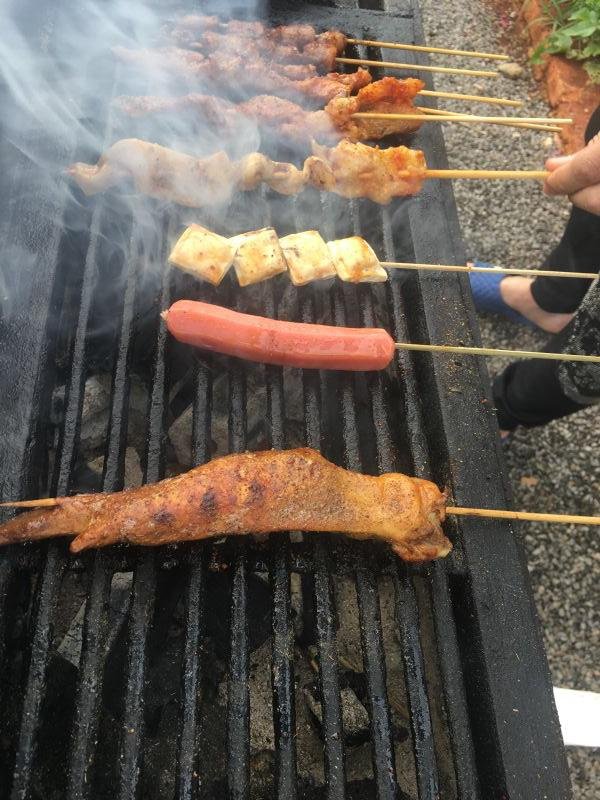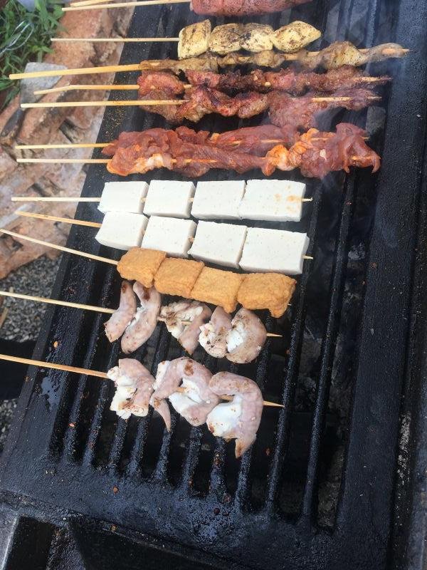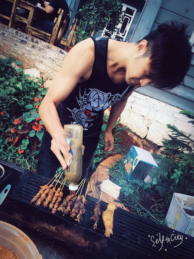 老板要炒菜,还要烧烤,我等不及了,自己烤,没到还可以