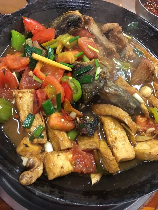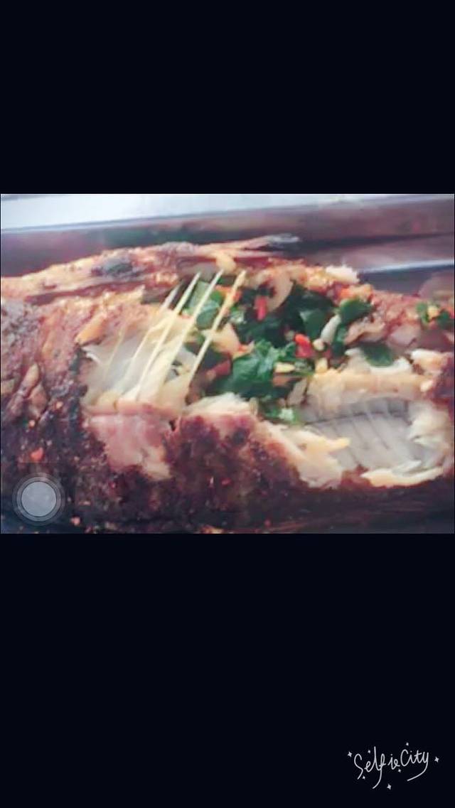 这是洱海他们自己每天钓的鱼,鱼肚子里放他们自己弄的辣椒和韭菜,看完了以后要沾他们自己弄的料,是发酵的小米,里面还有柠檬,蒜末,等等,很好吃。