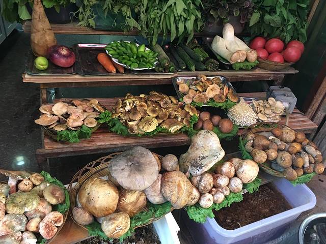 包浆豆腐,竹荪,老人头,青头菌,牛肝菌,奶浆菌,这些菌类的东西下锅之后,在20分钟之内,锅里面任何东西都不能吃,盖子也不能掀开,因为怕有毒,但20分钟后,老板掀开盖子看了一下锅里的大蒜的颜色,说可以吃了,别有一番风味。