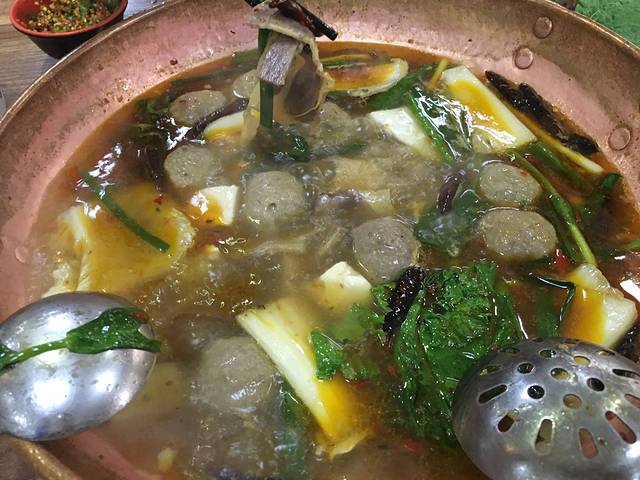 这是我从到了大理以来吃过最好吃的饭店,说实话,白族人的家常菜真的是吃不习惯。这个铜瓢火锅牛肉直接放在锅里,份量很足,比潮汕牛肉火锅好多了。