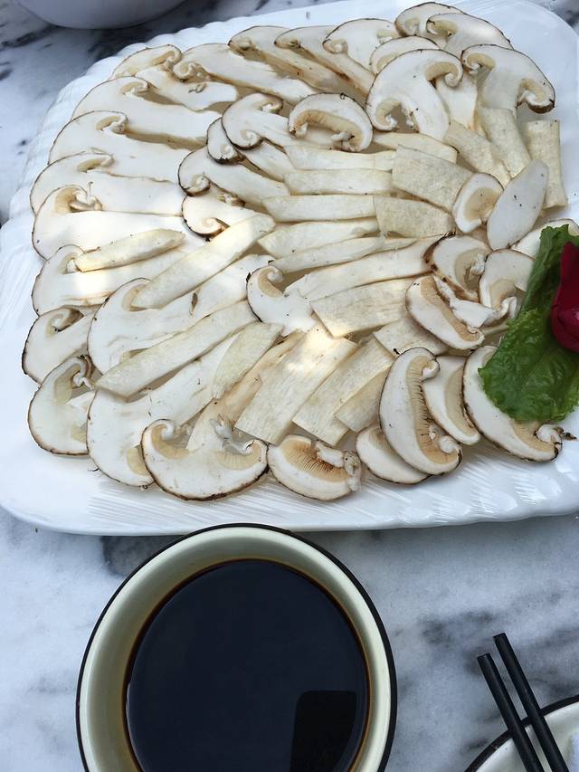 这是梅子井酒家的松茸刺身,因为真正的松茸全部北日本进口走了,所以很少能吃到真的,云南相比要便宜一些吧,这些200块,除了这个,我觉得作为北方人,没必要吃别的了,真的不好吃。