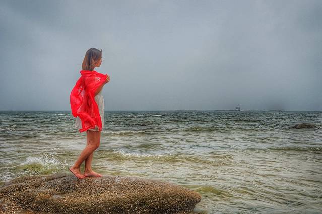 这位姑娘,你为什么总是挡住我的镜头啊?我真的只是想静静的看看大海。