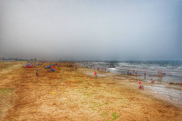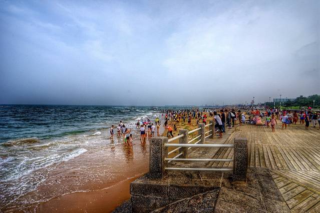 这里沙子有点粗糙,而且坡度陡,风浪大,但是因为离市区近,有地理位置的优势,到了旺季来游泳的游客也还是挺多的。