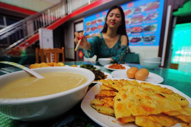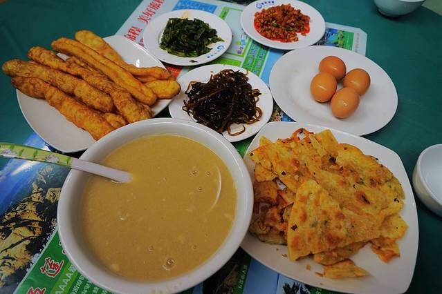 当然还有个原因就是他家菜做得好吃啦,这是后话,有很多美味的海鲜呢,慢慢看。渔家的早餐也很丰盛,渔家自己烙的葱油饼很好吃。