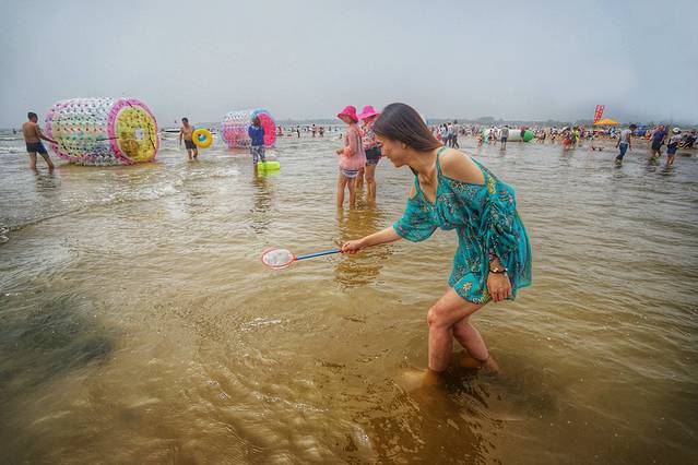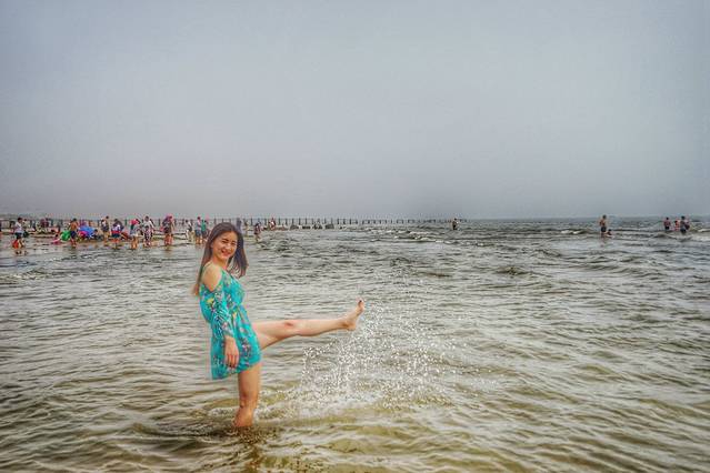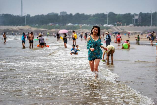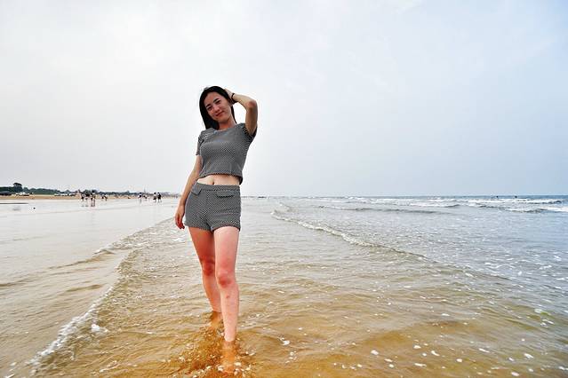 虽然不想下水,但是也忍不住来玩玩水。今天虽然太阳不大,但是海水的温度还是挺高的,进入7月,其实日照就可以下水了。