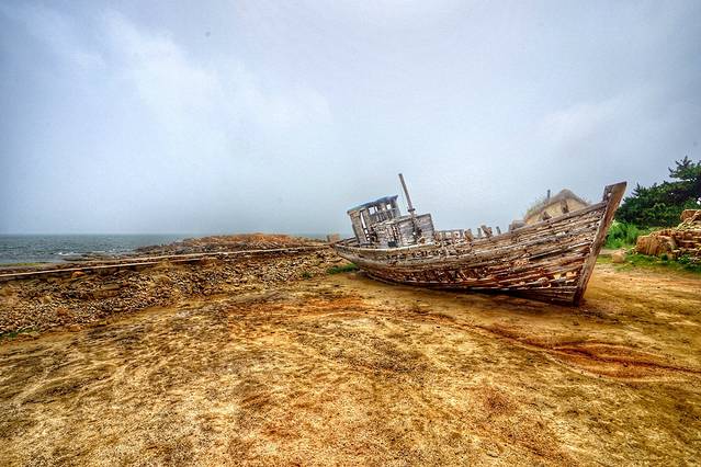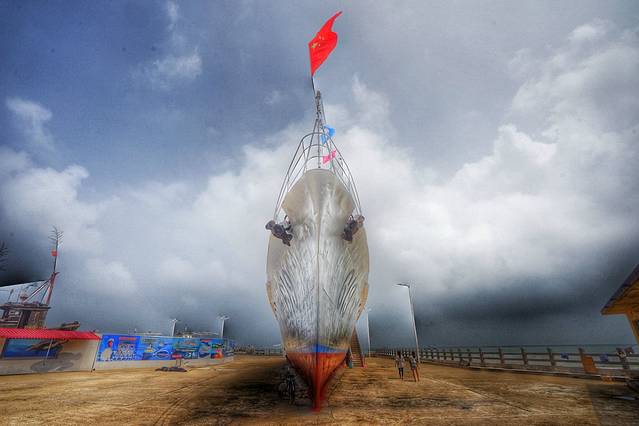古老的渔村怎能没有渔船呢,这里有几艘破旧的渔船停放在岸边,和这古朴的渔村倒也是相宜得彰。