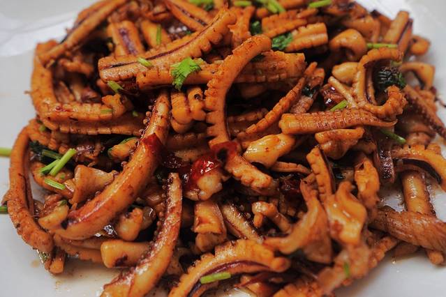 渔香家园菜做的好吃,我们喜欢口味重一些,但不是咸,是有点辣的那种,这酱爆鱿鱼就做得特别好吃。