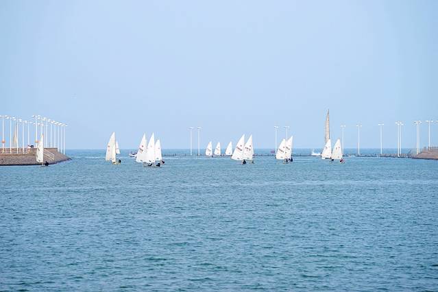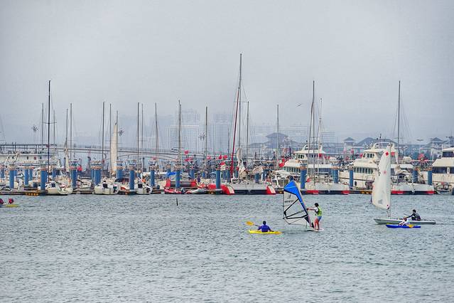 这里不愧为世帆赛基地,每天都有专业的帆船运动员在这里练习,在游客看起来,也是一道非常赏心悦目的风景。