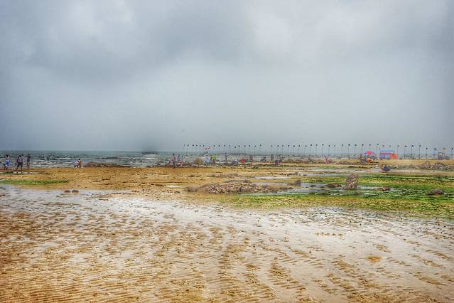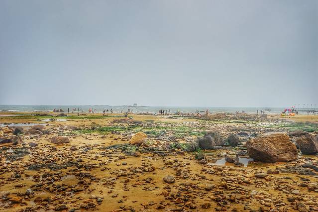 太公岛这里也是礁石遍布的,它的北边就是第三海水浴场,南边就是第二海水浴场,两个浴场就被太公岛这一大堆乱七八糟的礁石给隔开啦。