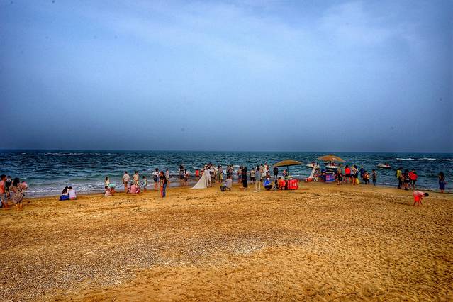 远处的隔离带就是现在新规划的万平口风景区的势力范围啦,以前是可以随便溜达过去了,全都是连在一起的免费海滩,现在可是要收费的,免费海滩越来越少啦。