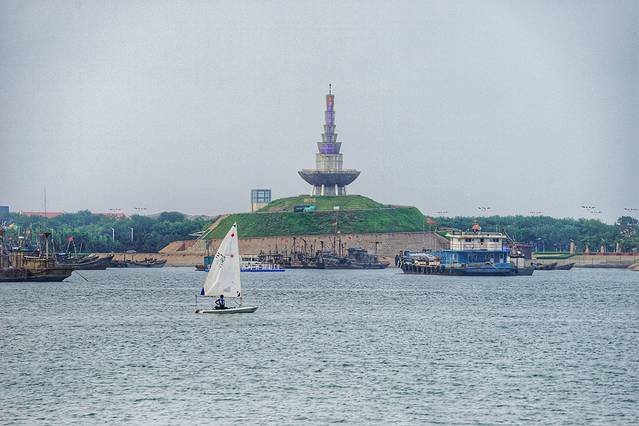 远处就是桃花岛,就是个光秃秃的小岛,真的不怎么漂亮,不过岛上要是种满了桃花,可能就会好看些了吧。