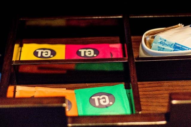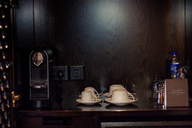 房间里的空调有加湿系统,还配备着茶具,胶囊咖啡机,冰箱等,满足各类人的需求。