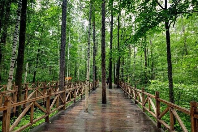 午后放晴的长白山,干净纯粹,呼吸着新鲜的空气,在一片蓝天之下漫步木栈道。