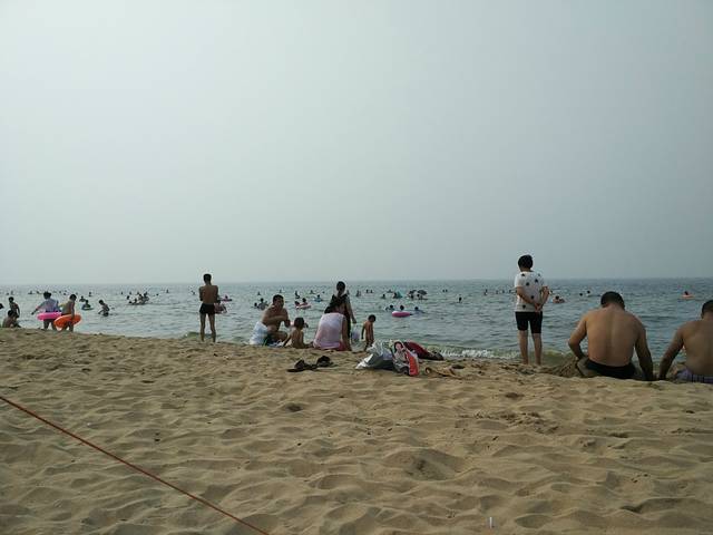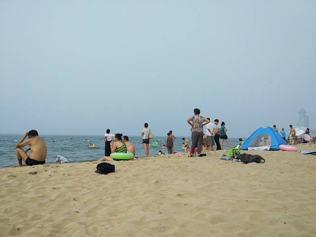 在大悦城找了一间泰国餐厅,之后打车去了金沙滩。金沙滩沙子很细腻,靠近岸边的海水有些脏,里边很好,老公说海岸线很长,因为我怀孕了没有下水,在沙滩上支了帐篷。晚上六点,坐公交车回烟台。