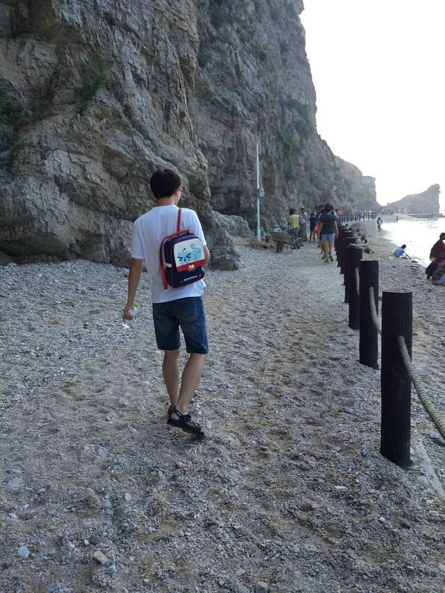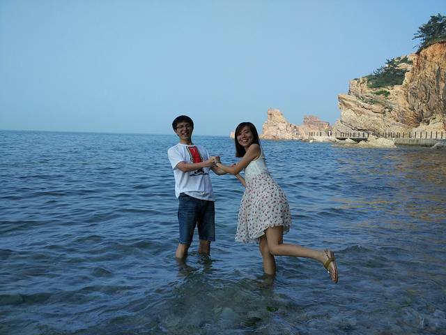 中午我们换了南岛的快捷宾馆,休息一下前往望夫礁。我们住的比较偏僻,打车到望夫礁15元钱。之后坐了长岛的公交,到明珠广场附近觅食溜达。望夫礁景区不大,我们坐在石滩好久,海水清澈,非常惬意。