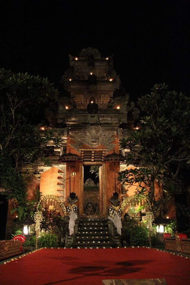 白天安静的乌布皇宫,到了夜间就会装点成为神秘的舞台。以石门为背景,以鲜花为妆点,即将拉开帷幕的就是著名的巴厘岛舞蹈表演。