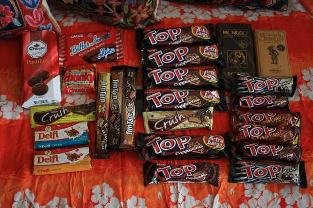 Top巧克力,买了一大堆,里面有蓬松的米花,非常好吃。