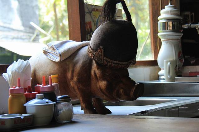 途径Ubud时,在路边的一家Gallery逛了一下,里面的木雕都很精致,价格也很“精致”,都是美元标价,很小的一个,10*10cm的,也要$20,最多打7折。