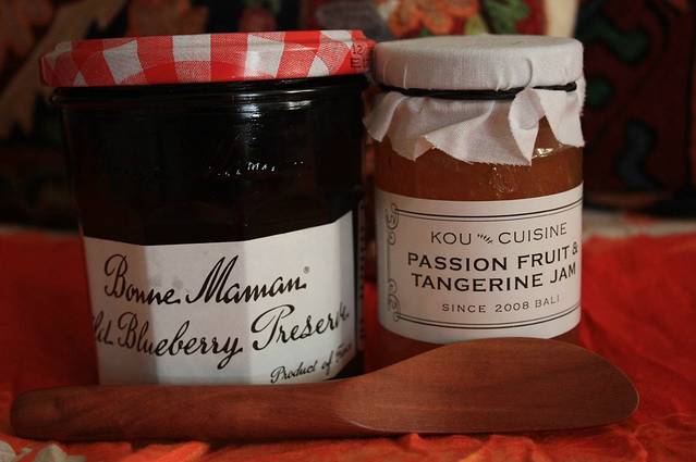 在超市,和猴林路上KOU搞定的2苹果酱,以及乌布小店里的纯木质果酱刀。