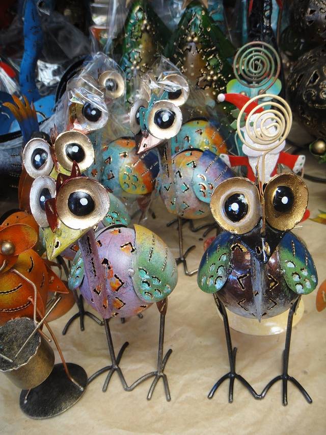 角落里的摊位,用铁皮制作的小摆件。有不少外国美眉在这里挑圣诞款式的挂件。都很便宜,相比在猴林路上小店里买到同样的就贵很多了。