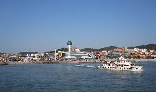 船快靠岸的时候,不远不近的拍了张长岛港照片。