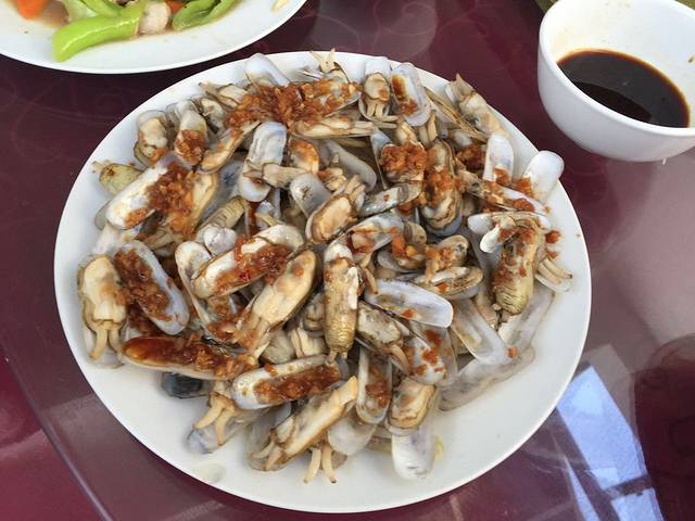 蒜茸浇汁的蛏子。