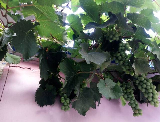 门前一串一串的葡萄,很诱人吧?