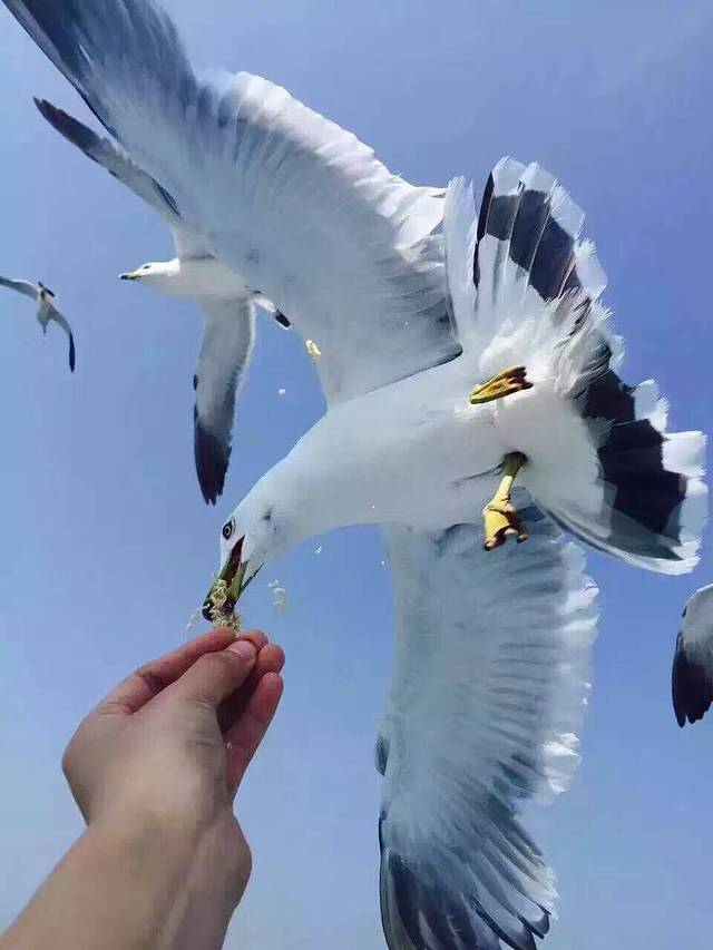 万鸟岛真的好多海鸥啊!数以万计,很特别的叫声,好热闹!提前准备了方便面,火腿肠,小馒头,一抬胳膊就有成群的海鸥围绕,触手可及。