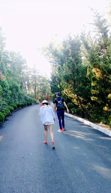 走在烽山林间绿丛的小路上。让人帮忙拍了一张,嘿嘿。这样的角度显得我还挺高的。