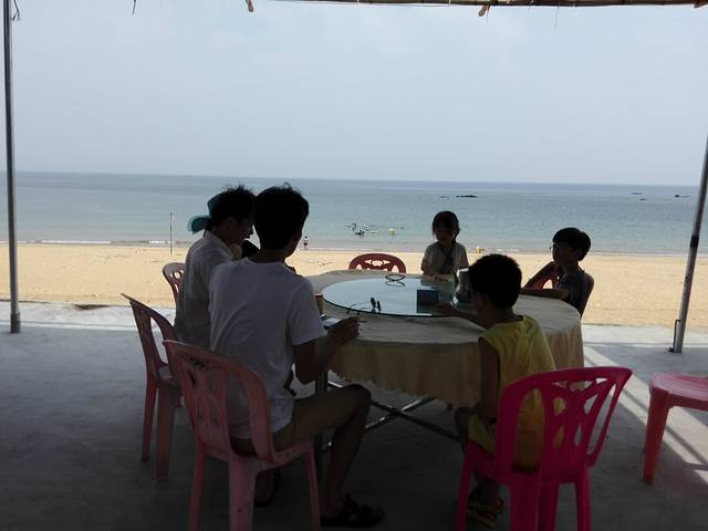 到达目的地:海陵东岛,,,此处没人管理的,所以整个海滩任君选择,路边设有很多海鲜店家可免费停车,更衣,冲淡水,,,当然也可来料加工等,,,