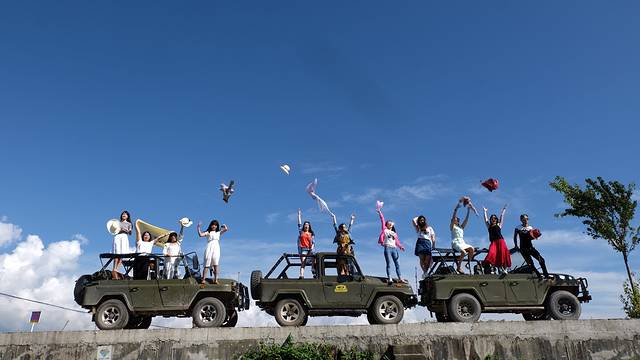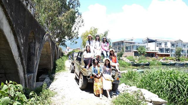 好多盆友看了朋友圈都在问我这个怎么报名的,在这里告诉大家,要么住在贱人龙的旗袍艺术酒店或者茶马古道国际青年旅舍,这样报名只要199/人,住在别的地方的话可以直接在去哪儿网上买,会贵一点。建议还是住他们的酒店吧,这样早上集中也方便,也有提供免费的早餐豆浆馒头哦。开吉普的都是酷酷的,路上会帮你拍好多美美的照片,其中还有放肆嗨环节的哟,就是吉普飞奔在田野间,我们张开双手尽情释放压抑许久的情绪,太棒了!好了,接下来要好好地秀一秀吉普敞篷的酷照了~~~