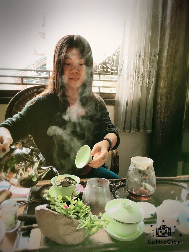 因为今晚就要过昆明,明早的飞机回家,今天大伙决定就呆在客栈,霸占了老板的茶几,泡一下午茶哈哈~~~~~有这样一个机会在丽江客栈聊聊人生也是不错滴