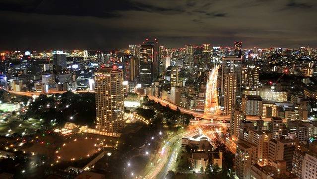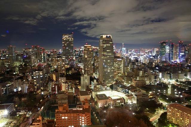 登上红彤彤的东京塔,150米高的大展望台拍到的夜景