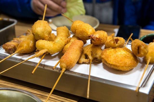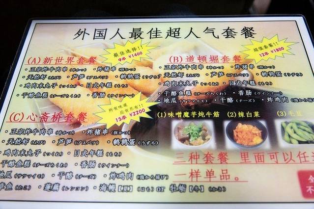 元祖串串烧是一家拥有大概90年历史的老店,据说道顿崛这里的生意极好,晚上九点钟了,吃客还在门口排队,导致我们望而却步。今天就要离开日本了,排队也要吃。