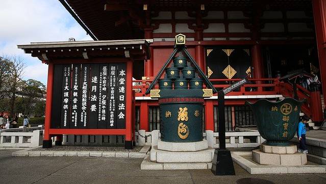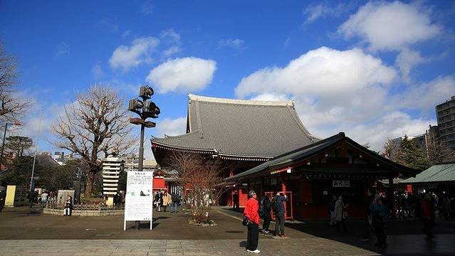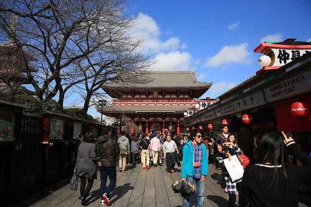 浅草寺是日本现存的具有“江户风格”的民众游乐之地,是东京都内最古老的寺庙。在门的中央有一下垂的巨大灯笼,上面写着“雷门”二字,已成为浅草的象征。