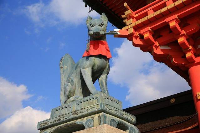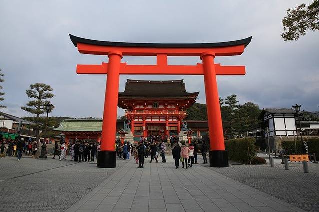 伏见稻荷大社,稻荷神是农业与商业的神明,香客前来祭拜求取农作丰收、生意兴隆、交通安全,它是京都地区香火最盛的神社之一。