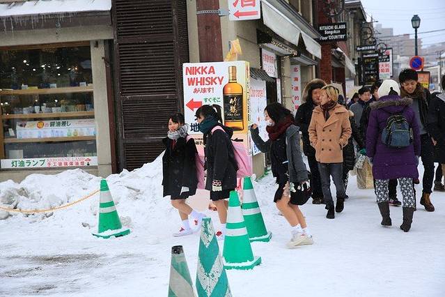 日本人从小就耐寒,现在最冷时节还有穿丝袜短裙的年轻女性,当地人也没有像我们穿戴那么厚实臃肿,围巾帽子包裹的严严实实,都武装到牙齿了,还以为有多寒冷呢。