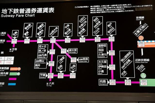 购买地点,最好是在JR京都站或地铁四条站的综合案内所内购买,这样还能拿一张免费的巴士线路图。如果没买的话也没有关系 ,上了巴士后,下车时直接问司机买就可以。京都巴士线路图日文电子版,感觉看日文版比英文版容易,基本都是汉字。