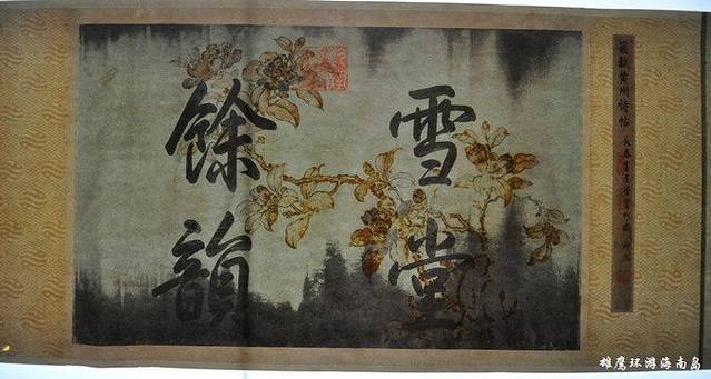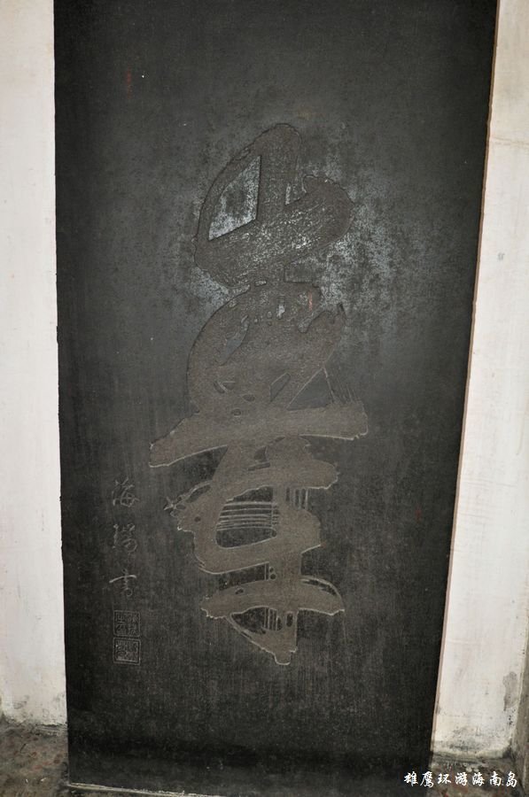 最有特色的是右边墙上的一块大理石碑刻,那是根据明代著名画家唐伯虎的原作雕刻的《东坡先生笠屐》,石碑上右边一幅字为明代大文学家宋濂所题,石碑刻画是明代大画家唐寅所画的《坡仙笠屐图》:苏东坡头戴竹帽,脚穿木屐,高卷裤管,身体向前倾斜,在村路上顶雨急归。最珍贵的还是左墙角上的一块石刻,为苏东坡画的梅花图,900年过去了,还能亲眼所见苏东坡画的画真是一种奇迹。