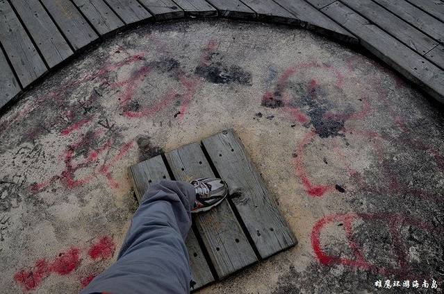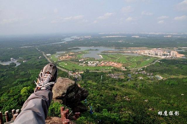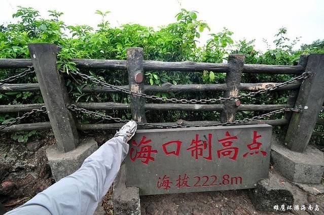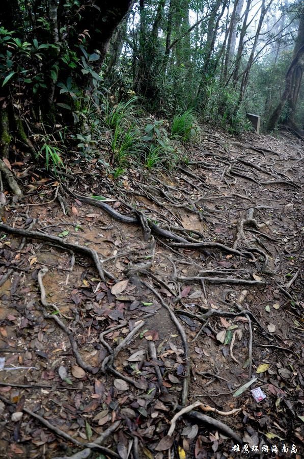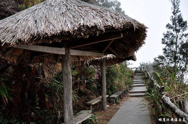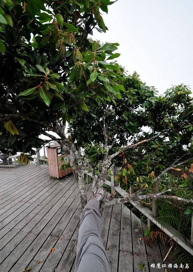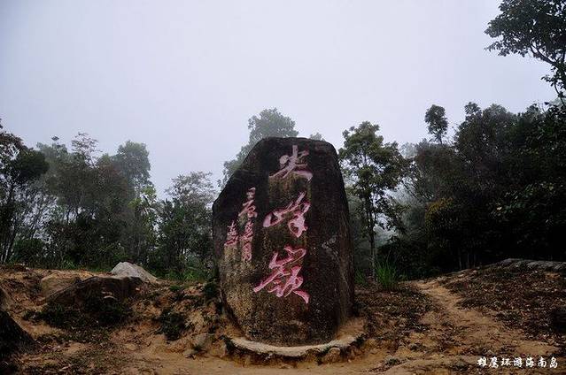 尖峰岭的顶峰尖尖上面一个平台,什么都没有,海拔1412米,在海南相对0海拔的海面来说已经高耸云端了!大雾站在海南这么高的地方什么业看不见,运气不佳,很是遗憾,听司机说尖峰岭主峰常年云雾缭绕。
