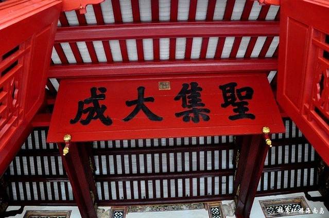 清代康熙皇帝玺印的“万世师表”、嘉庆皇帝玺印的“圣集大成”、咸丰皇帝玺印的”德齐帱载”、光绪皇帝玺印的“圣协时中”四块涂金 描红的巨匾,赫然悬挂大成殿中。文庙内诸多建筑上雕刻的花草、鸟兽、历史人物千姿百态,堪称杰作。文昌孔庙以它古色古香的明、清两代建筑工艺和启蒙益智的儒家文化氛围。
