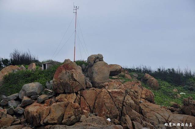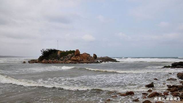 鱼鳞州位于东方市八所镇西南海滨,当地一个中学生告诉我他们叫作“海金山”。鱼鳞洲面临波涛翻滚的大海,奇峰林立,岩石多姿,绿草灌木铺地,长年山花烂漫。海滩上,沙细如末白如雪,松软如绵。海面碧波万顷,浅水小艇穿梭,远海白帆点点,海鸥翔空。海风推波助澜,浪被扑打在石壁上,溅起一堆堆雪白的浪花,涛声如雷。