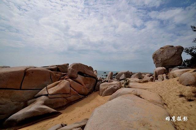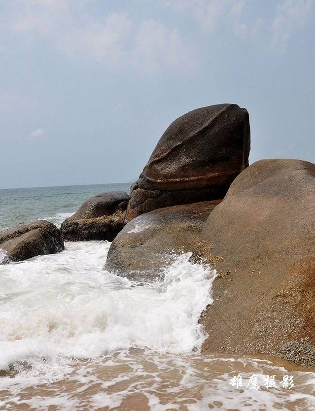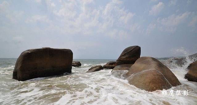 礁石永远是棋子湾的主角之一,厚重沉稳、无语透着刚毅,却固守在这不断冲刷自己的浪边,棋子湾礁石赞:一是久历冲击,矢志不缀,大风大浪整日在其肢体上划割,礁石总是迎风击浪,没有丝毫的退缩;二是淡泊的心态,虽然我们听不到礁石的“心跳”,但它却更从容、更淡泊,孤寂着,但有绿苔相伴;三是礁石的柔顺,柔石拂水,海浪波次冲刷海岸,如同卷起的雪,以柔克刚反而让礁石更兼具起“人格”的魅力。